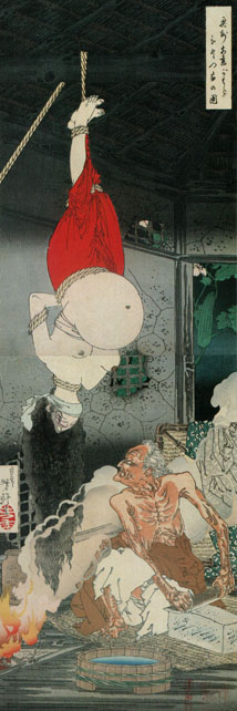 한발 늦게 집에 돌아온 오니바바는 열려있는 방문을 보고 ‘내가 그렇게 보지 말라고 했잖아?’라고 외치며 스님을 쫓아갔습니다. 오니바바는 백발은 산발하고, 크게 떨리는 눈은 무서울 정도로 치켜 올라가고, 귀까지 찢어진 입에서는 두 개의 예리한 이빨을 빛내며 그 무서운 표정은 이미 사람이 아니었습니다.