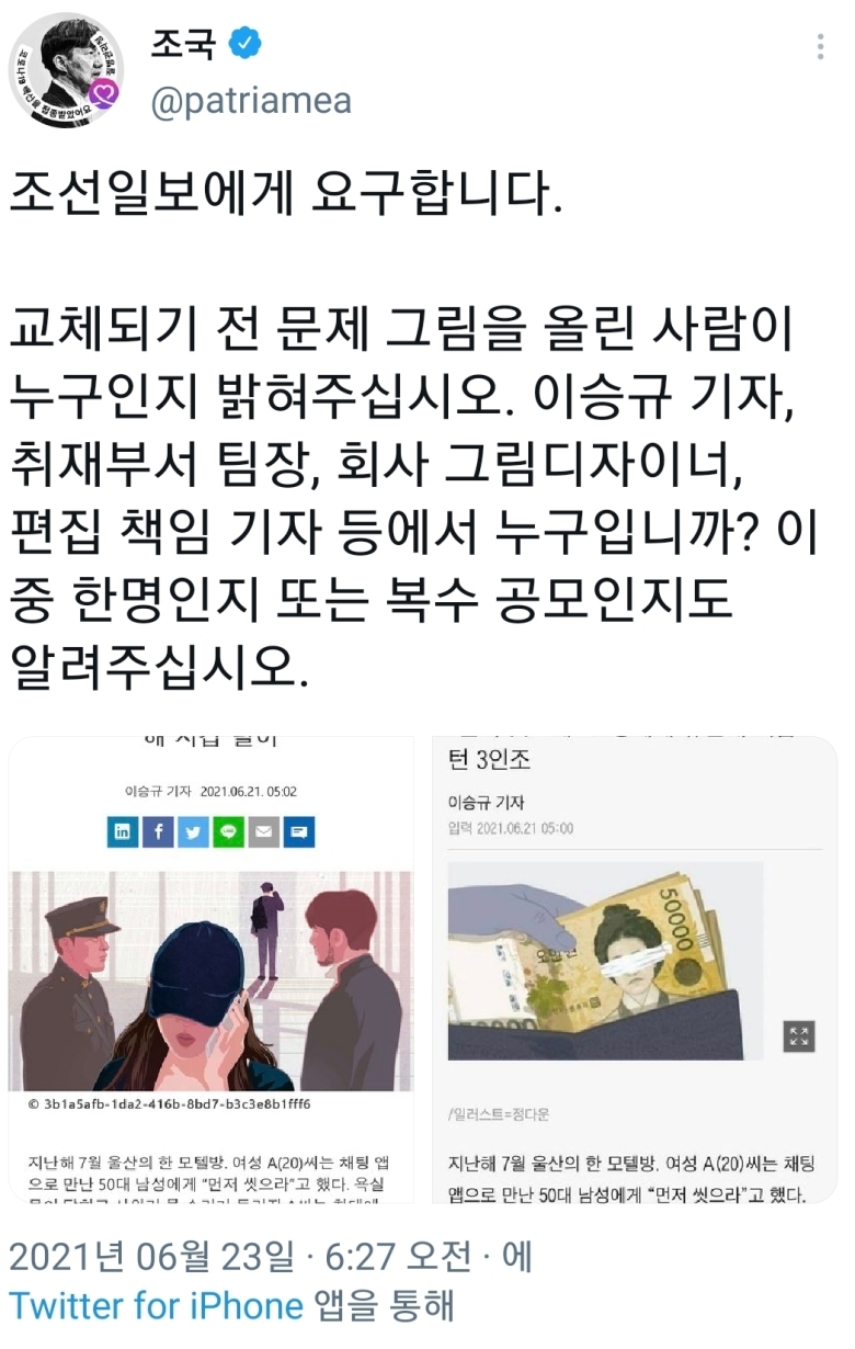 | 조선일보 이승규 - 조국일가 모욕 기사 (0) | 2021.06.23 |