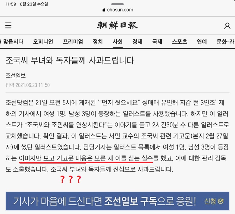 혐) 조선일보 (이승규 - 조국일가 모욕 기사) 사과문