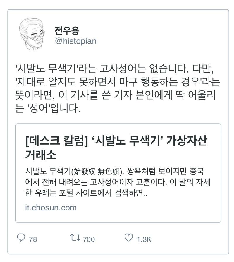 조선일보의 "시발노 무색기"